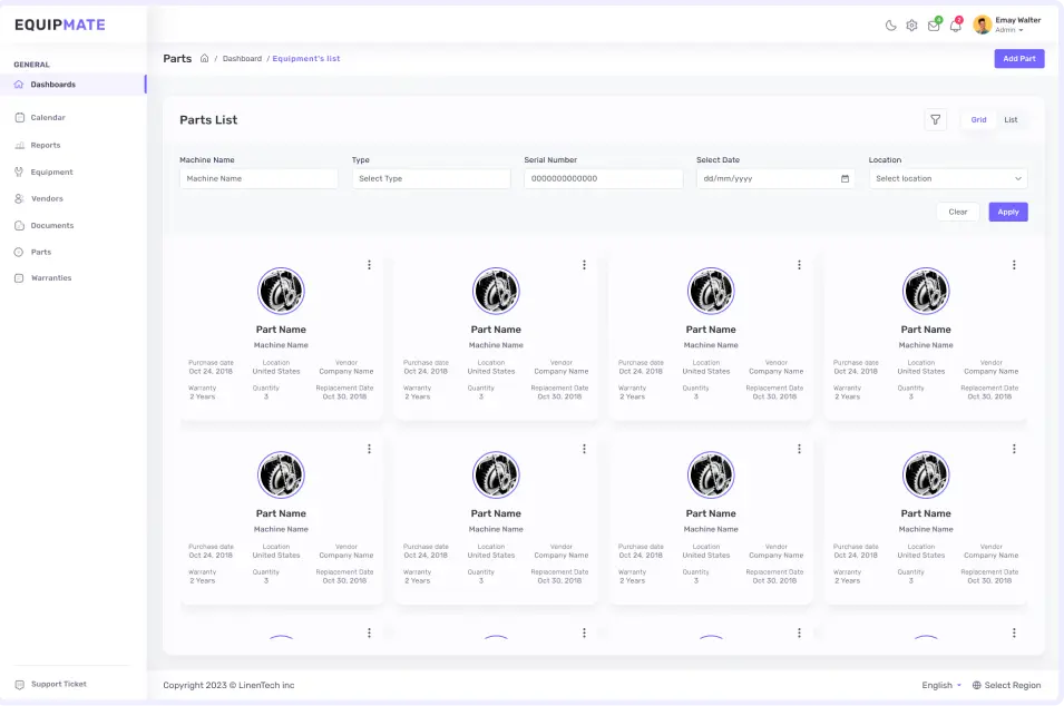 Manage contacts and contracts for equipment vendors, parts suppliers, and maintenance providers to foster efficient collaboration, and service agreements.