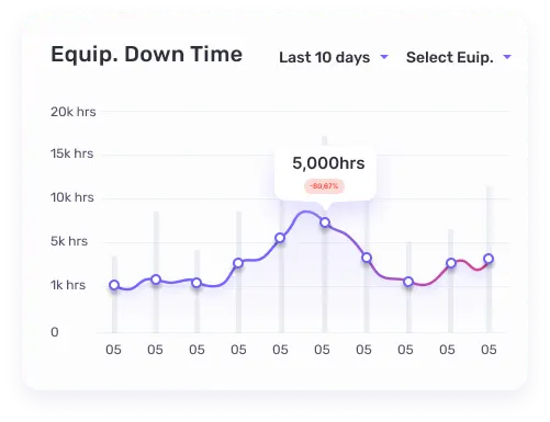 Monitor present health and past maintenance activities of key equipment. Get accurate suggestions with predictive insights into future maintenance cycles. Extend equipment longevity by up to 40% to minimize downtime.